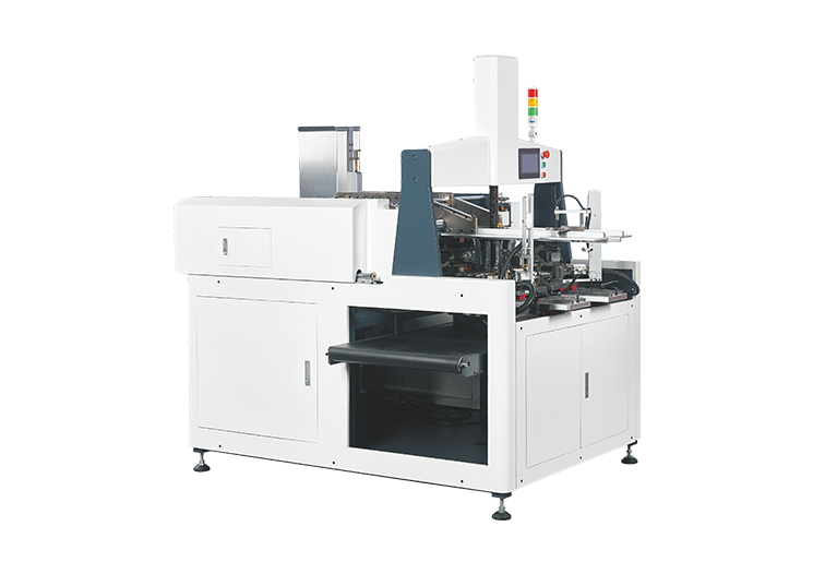 本機是加工精裝盒,天地盒的理想自動化設備,通過人工在流水線上將內盒和面紙定位好,再將定位好的紙盒放進機器木模上,機器自動運行,糊盒、折邊壓泡一次性完成。每分鐘可生產精裝盒多達30個,大大提高了精裝盒的生產效益,節省了生產成本。因每個動作都是機械式完成,使產品標準化生產,大大提高了產品的質量。
