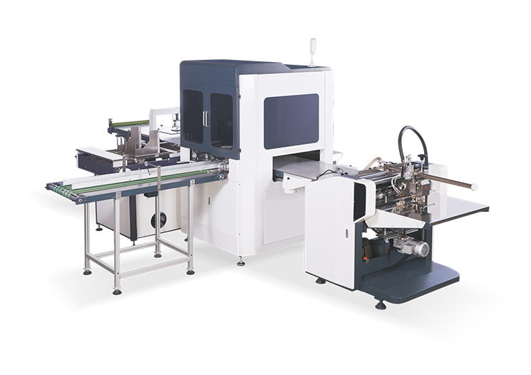 適合各種天地蓋的自動生產線,故障診斷功能,自動吸送面紙和送灰板功能,高精度凸輪飛達送紙,整機采用松下伺服控制系統,視覺定位系統及機器抓取,采用雅馬哈機器人,采用全新循環溫控上膠系統,采用高清攝像頭定位可精準定位天地盒、灰板、皮殼。